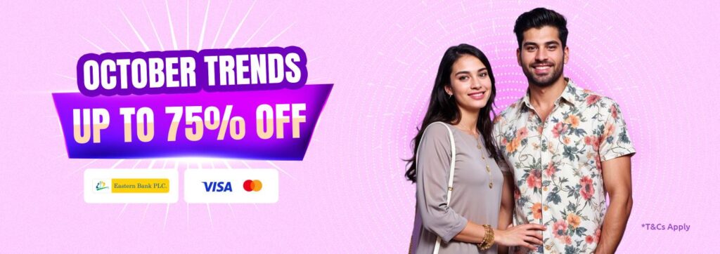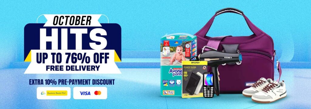 October just got exciting with the most anticipated shopping campaign of the season! Get ready to enjoy up to 76% off across your favorite categories, along with free delivery all over Bangladesh. Whether you’re shopping for groceries, fashion, lifestyle, or tech, this October is packed with savings, surprises, and exclusive brand offers you won’t want to miss.